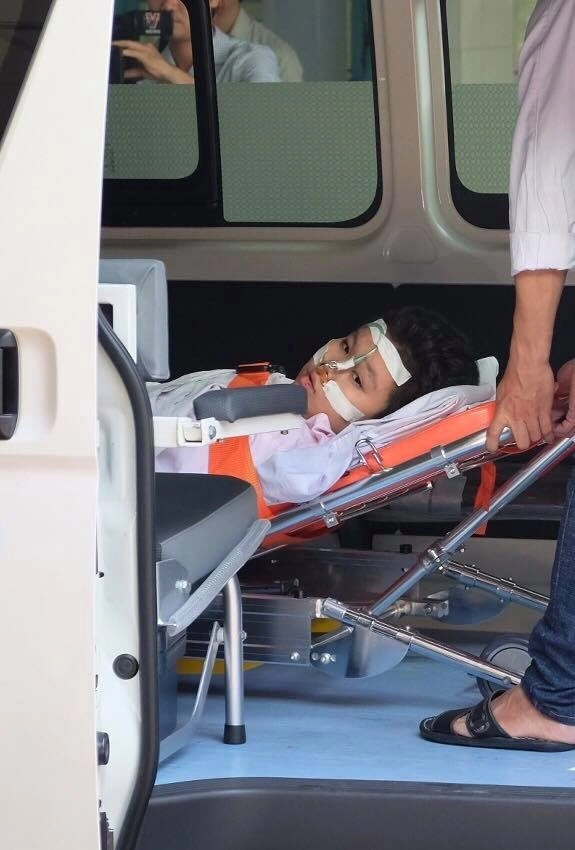 Đến 18h ngày 23/3, dù chưa thể nói chuyện được nhưng lần đầu gặp lại các con sau tai nạn, chị Hạ vẫn cố nhoẻn miệng cười, nước mắt lăn dài.