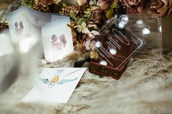 - Thiệp cưới của Ưng Hoàng Phúc làm từ mica